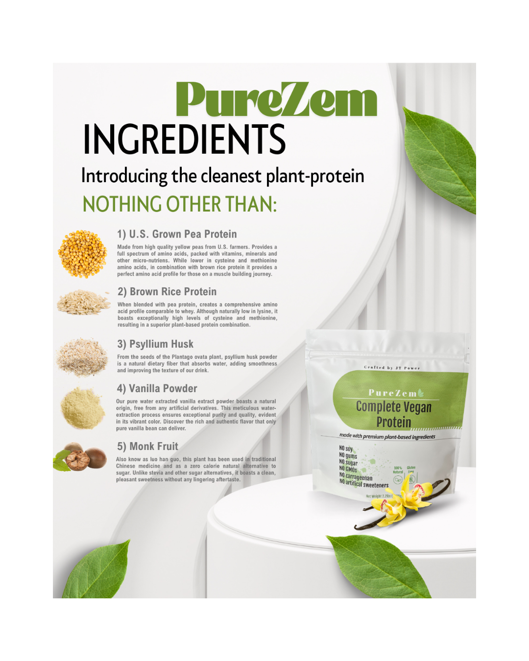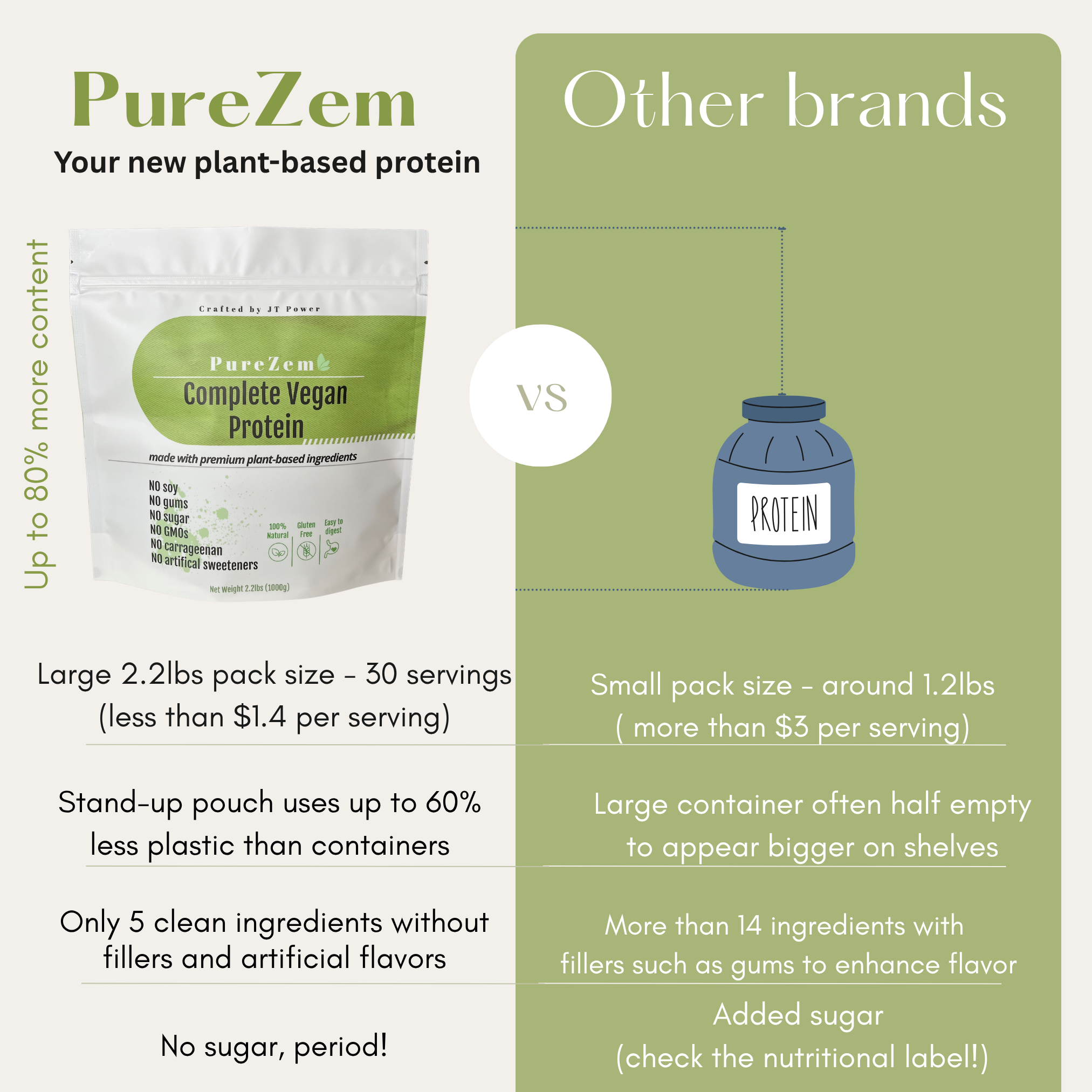 Introducing PureZem, the premium vegan protein powder crafted with purpose from just 5 clean, natural and organic* ingredients. We believe in simplicity without compromise, providing essential fuel for your active lifestyle. Experience the power of nature's finest, thoughtfully blended for your well-being.